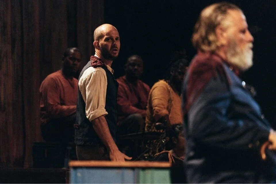 MANZI: C’est effectivement assez convenu et archi déjà-vu, ma chère morue. Cette scène sans coulisses n’est pas un lieu très propice pour les raffinés artifices et j’ai tout de même apprécié l’exploitation multi-dimensionnelle de l’édifice. L’arrivée du premier moringueur au milieu du public, Ismène en hauteur près des projecteurs ou encore Tirésias côté jardin ont bien occupé le terrain. L’acteur Didier “Manéo” Ibao en devin aveugle, c’est quand même cocasse mais c’est clairement l’un des plus loquaces. Si cette troupe revendique un esprit d’équipe, il aurait fallu que le sélectionneur soit plus intransigeant pour sa composition et change notamment le brassard de son capitaine barbu. Sinon, le chœur avec Maestro Waro, c’était vraiment canon, non?