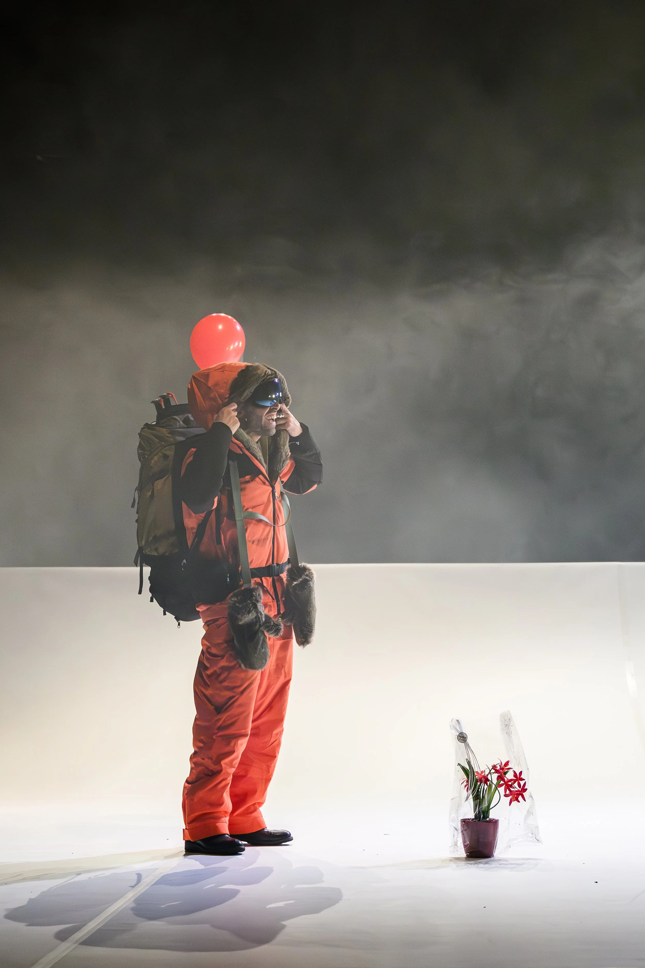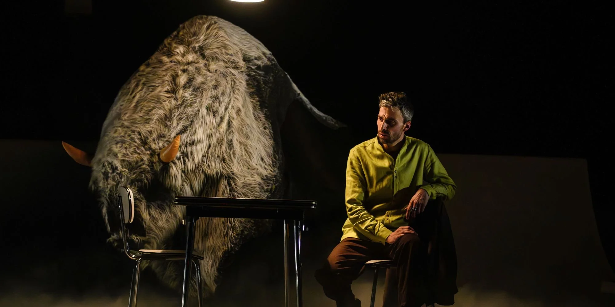 Manzi : Pourtant, c’est le comédien qui claironne qu’il ne faut plus s’essayer au mime en 2026 et il s’engouffre à fond dedans. À ce stade, c’est soit de l’excès de confiance soit du masochisme. Alors oui, il a un super cardio mais quand t’as compris la mécanique, ça devient tellement répétitif. Ce passage s’est transformé en toboggan pour la droite de mon rang qui s’est lentement glisser dans les bras de Morphée. En revanche, j’ai beaucoup aimé l’apparition du bison. On retrouve principalement des photos de ce beau passage onirique dans la communication de cette pièce. Ce qui a contribué à cette sensation de m’être fait berner, un peu comme quand tu lis l’annonce d’un appartement avec vue mer et que, sur place, il faut se mettre sur la pointe des pieds dans les chiottes pour apercevoir la Grande Bleue. D’où peut-être ma déception face au reste de la mise en scène…
