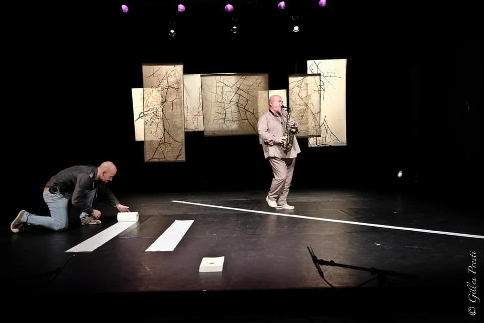 MANZI : Tu m’avais tellement encensé la prestation de cet acteur-traileur que je me méfiais de l’aspect “performance” lié à cet archétype d’ultra-randonneur. Surtout quand ça commence avec cette incarnation de Bilal l’azimuté et son accent américain bien stéréotypé. Puis, la musique est venue propulser tous ces numéros avec une énergie de dingo. Même si les solos de saxo ont tendance à me filer des pustules, il faut reconnaître que le binôme Jousse-Jah Pinpin propose une complicité majuscule. Plus qu’un voyage initiatique c’est surtout une plongée fougueuse en musique dans l’Amérique. Dans un tempo halluciné, Florient Jousse, sans une erreur de diction, déclame sa partition à la perfection pour pantomimer l’addiction. Et dieu sait si imiter un mec complètement perché est un exercice risqué. Son corps en perpétuel mouvement personnifie cette virée frénétique en parfait accord avec la zique. Plus qu’un métronome communicatif, ce joker est aussi chanteur et je suis certain que toi, Zerbi l’amatrice de scat song, de free jazz et de The Voice a été bluffée par ces rengaines endiablées…