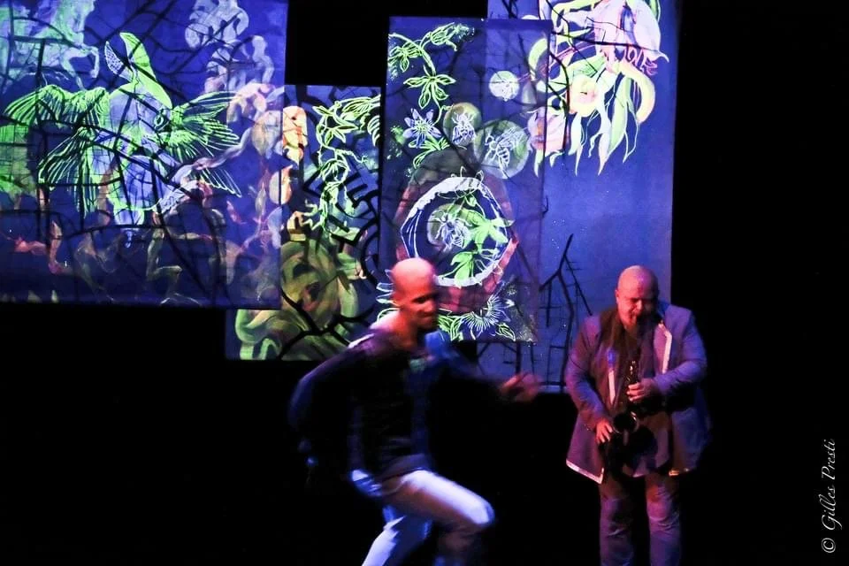 MANZI : '[voix caverneuse] Entre ici Frénésies! Je plussoie d’autant plus que ce saxophoniste m’a fait pogoter lors de mon insouciante jeunesse avec FFF (j’ai encore la baguette multi-dédicacée de Krishou) et que Florient Jousse est un des rares comédiens à ne pas prendre la mouche quand on sort notre tapette à critiques. Ça en dit long sur l’ouverture d’esprit et la maturité du garçon, en phase avec le message de liberté et de curiosité que cette pièce vient dispenser. Même les boomers emplis de nostalgie sortent de ce trip ragaillardis et la jeune génération y puisera de la motivation pour sauter la mer et revenir au pays avec les chakras bien ouverts.