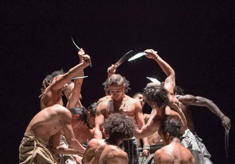 Et puis ceux des compagnies de hip hop qui ont été au début des années 1980 exclusivement masculines avant de laisser entrer les femmes sous un mode « control » drastique jusqu’à l’invention du krump. De plus, je me suis dit que quatorze mâles armés de dagues, ça risquait de tourner rapidement à la castagne, surtout que dans la pièce à un moment, on a une scène qui semble tourner à l’émasculation d’un des leurs mais qui se termine plutôt bien. Mais J’avais tout faux, pas la moindre violence réelle dans cette chorégraphie masculine tout en douceur. Alors Koubi or not Koubi ? Je me pose quand même la question.