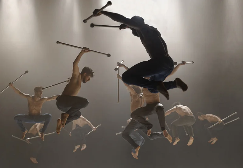 Bon, je vais commencer par la fin. Des amies qui avaient vu la pièce chorégraphique la veille m’avaient dit tu vas voir, c’est exceptionnellement beau, et là honnêtement, je ne peux pas dire le contraire. Je suis sorti du spectacle assez bluffé par les circonvolutions de quatorze danseurs habillés avec des robes en bandits du désert comme dans Ali Baba et les Quarante voleurs, qui presque sans répit et de façon époustouflante et maitrisée ont pendant une heure réussi à élancer de façon parfaitement synchronisée leurs corps dans des voltiges amorties au sol de façon feutrée, glisser au sol, se mettre sur la tête en headspin mais de façon prolongée comme des derviches tourneurs, et faire danser leurs sabres scintillant dans les éclairages sobres ambiance nuit de la scénographie. Un ballet très aérien où Hervé Koubi développe des figures tirées des danses urbaines avec les ressources techniques de la danse contemporaine dans laquelle il a été formé.