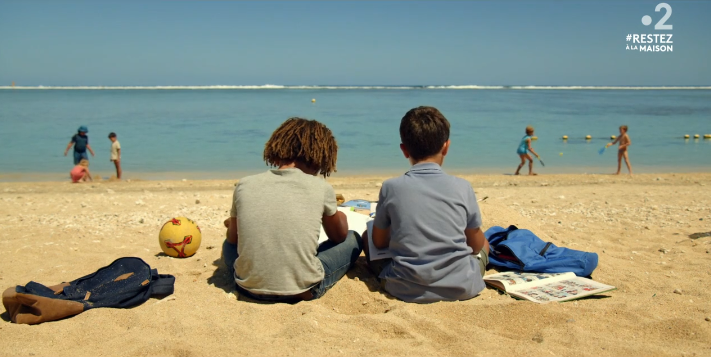 C’est sûr qu’avec ses travellings haut perchés, le spectateur métropolitain confiné doit quelque peu s’évader mais, pour nous autres réunionnais, ça nous enchante autant que les plans aériens de l’aéroport Roland Garros déserté, proposés par le service investigation de zinfos974. Afin de valider la labellisation IRT, la production nous a collé le petit Enzo, cadet de cette famille Ricoré, véritable Jiminy Cricket rappelant bien fort à sa grande sœur teigneuse, Vanessa, qu’il n’y a pas de requins dans le lagon et qu’elle peut venir faire trempette en toute sécurité. Avouez que c’est plus efficace qu’une annonce désincarnée grésillant à l’arrivée de votre vol Air Austral. D’ailleurs, pourquoi ne pas en remettre une petite couche en faisant bosser Victoire dans cette charmante compagnie.