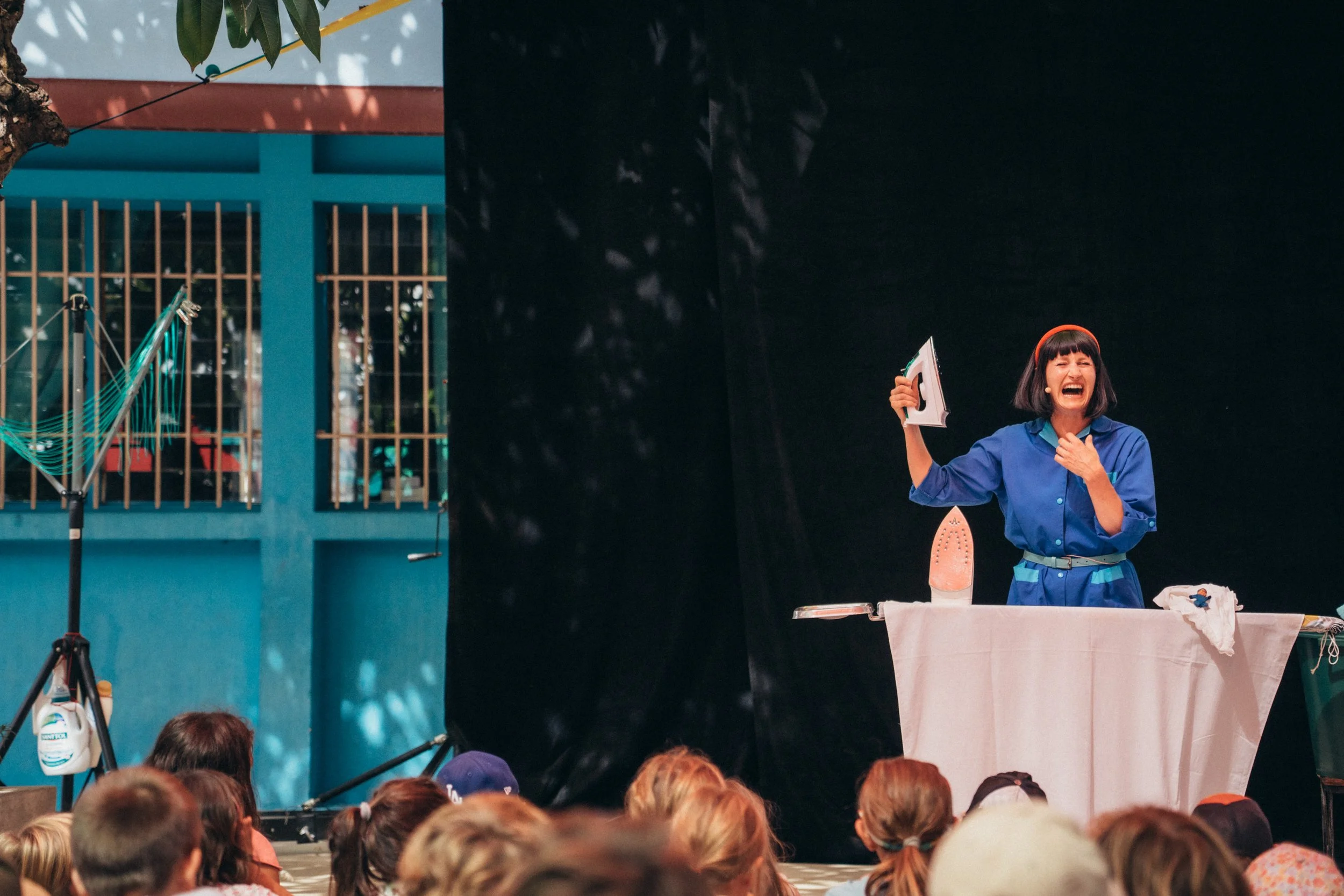 Enfin une proposition qui tient la route sous le Kiosk du parc du 20 Décembre avec sa configuration et son acoustique difficiles à occuper. Comme la Cie Réverbère, l’interprète Nicolas Ferré a des heures de vol d’interaction avec le public et, avant de faire décoller son frigo, il use avec brio d’un arsenal de recettes clownesques éprouvées. Encore faut-il avoir le talent, l’humanité et un sacré sens de la répartie mimée. Tours de magie, poésie à la sauce Chaplin, accompagnement musical italo-forain, deux bons barons dissimulés dans le public et clou final… bref, on ne s’ennuie pas une seconde avec ce bouffon et cela fait plaisir de retrouver un clown percutant à Saint Leu. Déso Titi Robert mais tes vidéos sur les réseaux sociaux ne sont pas encore au niveau.