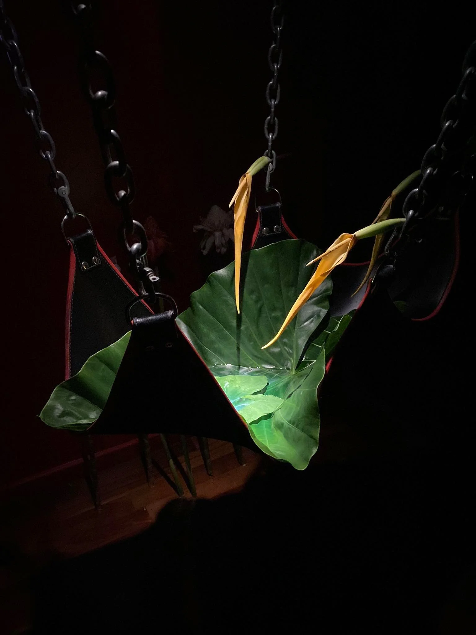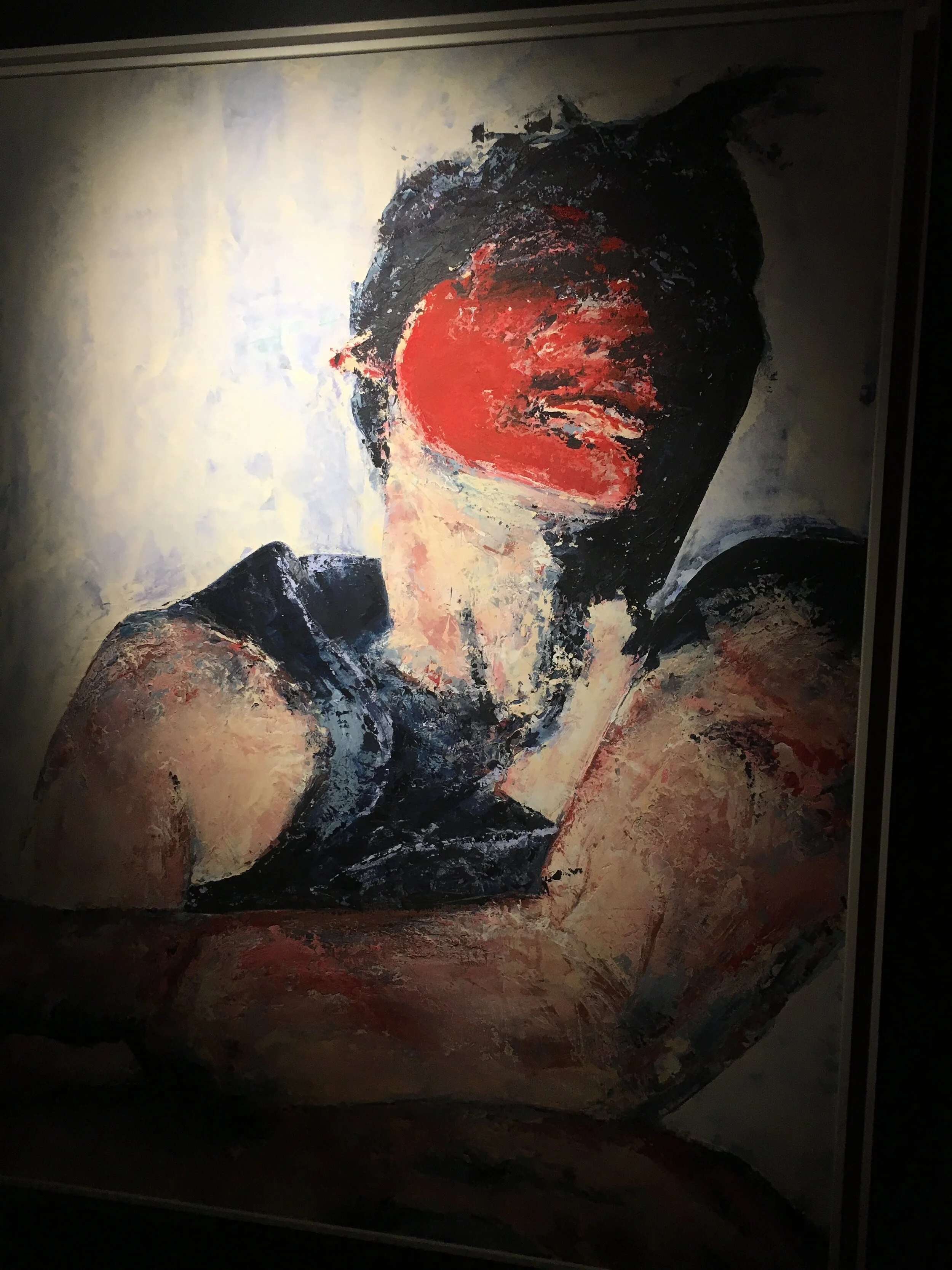 En revanche pour les femmes enceintes, c’est beaucoup mieux fichu. Banquettes à vue, plein de coussins pour surélever le bassin, possibilité de s’isoler pour bosser son périnée, et table d’accouchement menottée pour être sûre de ne pas tomber. Mais revenons à notre sujet. « Qu’importe le flacon pourvu qu’on ait l’ivresse » disait Baudelaire… Après tout, en esthètes que nous sommes, il s’agit plus d’appréhender la création que son lieu d’exposition. Difficile pourtant de faire abstraction d’un tel écrin, quand l’oeuvre d’art s’expose en club libertin.