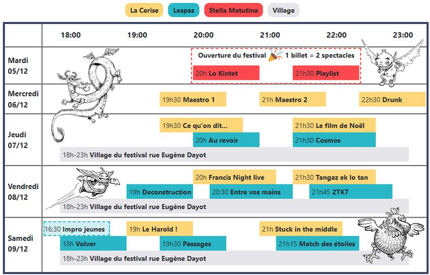Le FERIIR est le seul et unique festival international de théâtre d’improvisation de La Réunion. La 11ème édition, prévue du 5 au 9 décembre 2023, promet d’être riche en découvertes et en émotions. Le théâtre d’improvisation est un art aux multiples facettes, drôle mais aussi dramatique. Pendant une semaine, des pointures mondiales de la discipline et les comédiens de la Ligue d’improvisation réunionnaise (LIR) le déclineront sous toutes ses formes : match, duo, impro longue, saynètes, etc.