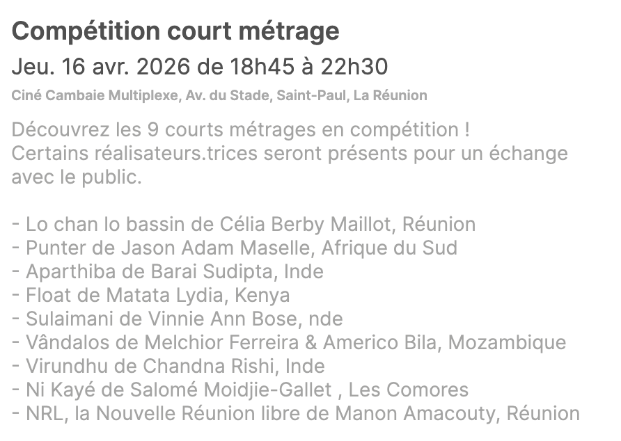 FIFOI 2026 / FESTIVAL DU FILM DE L'OCÉAN INDIEN / Compétition long métrage documentaire #1 (8€) (copie)