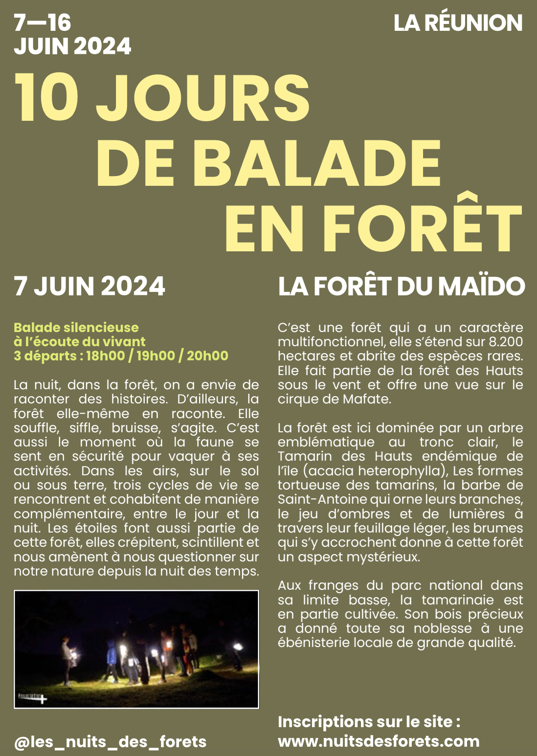 Le programme des Nuits des Forêts à La Réunion vous est enfin dévoilé ! Du 7 au 16 juin, ce sont plusieurs propositions sensibles et scientifiques qui vous attendent dans plusieurs forêts de l'île